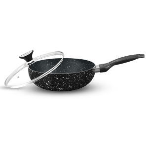 SONEX Non-Stick Classic Wok, 30 cm ? Black Granite Finish, Durable Glass Lid & Long Handle